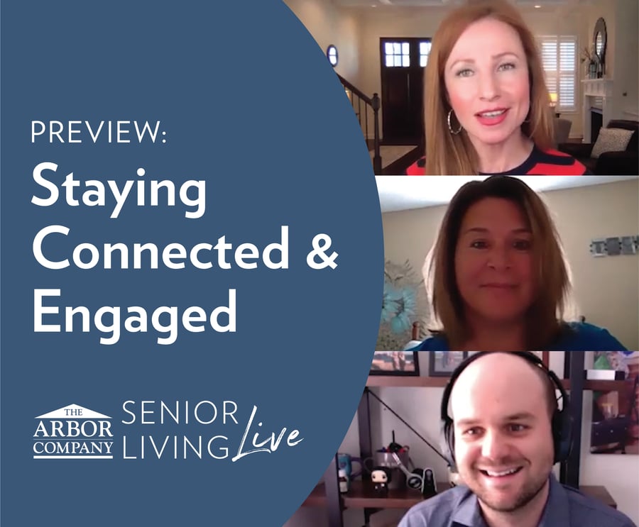 - Hello everyone, and welcome into Senior Living Live. My name is Melissa. Thank you for stopping by to catch this preview of our upcoming webinar, Staying Connected & Engaged. Now you can catch this webinar March 10th, at 3:00pm Eastern time I've got Matt Reiners the co-founder of Eversound, and Kris Frankel with the Arbor company who is joining me today to discuss some of the ways seniors are staying connected today. First, let's start with you, Kris. It is no secret that the pandemic has isolated many of us from friends, family, loved ones, literally our day to day activities but the pandemic has really had a huge impact on our seniors. Can you tell us what you have seen within Arbor communities over the past year and how has the Arbor community been able to help in terms of isolation?