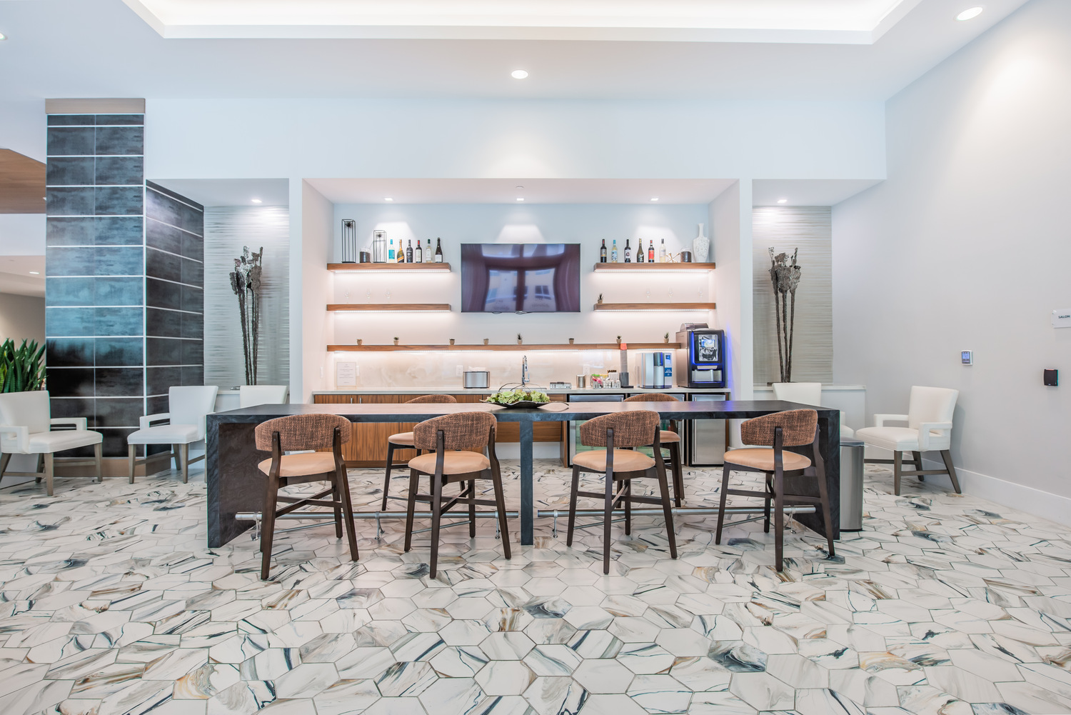 There’s something for everyone to enjoy at Mirabelle. We offer an expansive billiards and game room, a packed community calendar featuring everything from cooking classes to holiday parties, an on-site salon and spa, swimming pool and terrace, sky lounge, concierge services, and much more.