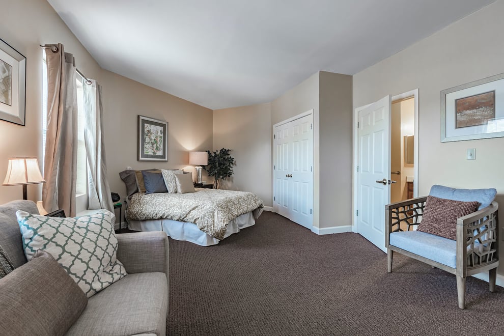 The Bridges neighborhood has three different floor plans: The Maple apartment, which is a studio apartment with one bath; the Mount Laurel apartment, which is a studio with one bath; and the Birch companion suite, which is a shared-to-bed apartment with one bath.