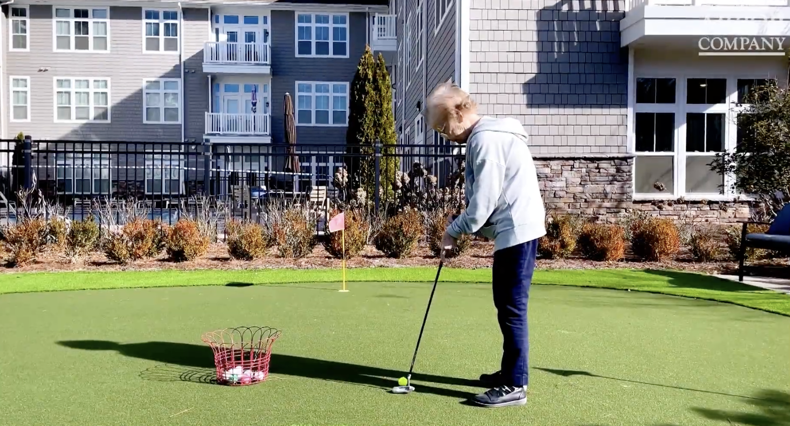 With the help of our amazing resident Faye, we get a peek at a day here, from start to finish. As soon as she wakes up, her personalized itinerary is filled with activities that keep her busy, but not overwhelmed. She first starts off the day with her coffee and newspaper given to her by our dedicated staff to catch up on the latest. We then see her meet up with her friends for a fun card game. She’s then picked up by our transportation team to take a shopping trip. You also see her exercise using our on-site gym and even see Faye take up a round of putt-putt golf. She even takes a dive in the pool and gets dolled up in our beauty salon!